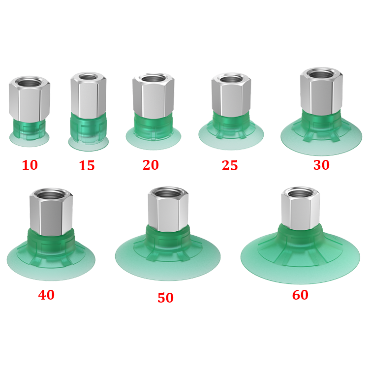 सपाट संरचना वाला सपाट सक्शन कप, सपाट या थोड़ी वक्रित सतह वाले कार्यपृष्ठों को अवशोषित करने में उत्कृष्ट प्रदर्शन करता है। इसके डिज़ाइन न केवल उत्कृष्ट स्थिरता प्रदान करता है, बल्कि कांच, धातु की चादरों और गत्ते जैसी सामग्री के वैक्यूम हैंडलिंग में व्यापक रूप से लागू होता है, और विशेष रूप से भारी धातु की वस्तुओं को कुशलतापूर्वक पकड़ने में सक्षम है।